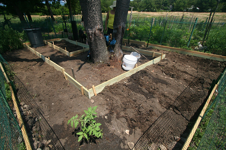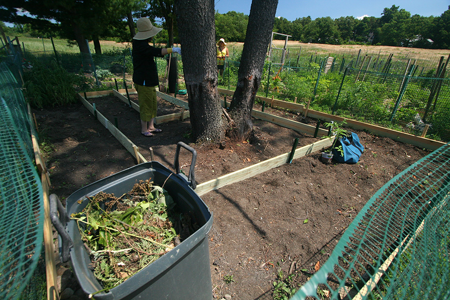 we saw the couple who got the no.2 pick with their awesome plot. although i envy their sun exposure, the one downside is they have zero shade cover. they actually ate lunch a few plots away, standing underneath the canopy of some pine trees. i bet they wish they had a black cherry tree growing in the center of their plot like we do!