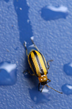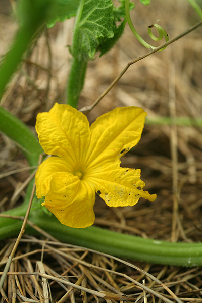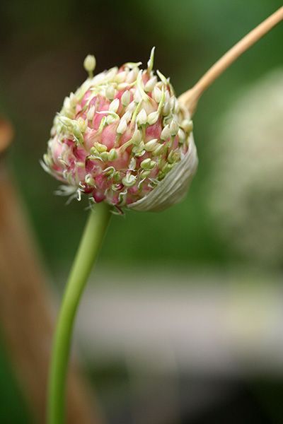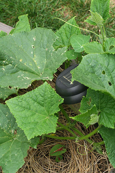 in the backyard garden, the garlic flowers are blooming. also last week i discovered cucumber beetles on my cucumbers and squashes; i thought they were 3-lined potato beetles until i went online and realized they weren't. cucumber beetles are actually pretty smart, going into evasive maneuvers when they sense danger, like hiding on the other side of the stem or leaf or simply flying away. i can tolerate some plant damage, but if they transmit bacterial wilt into the garden it'll mean the early demise of the cucumbers and possibly the squashes as well.