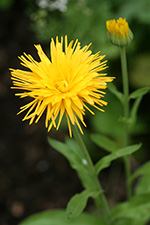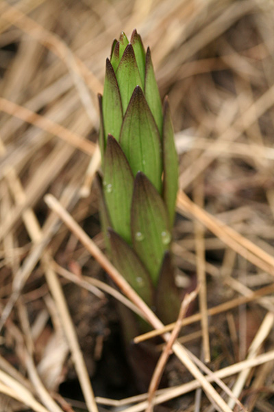 the new lilies we bought this season are also emerging. i sort of lost track of which is which, but all 6 of one variety has emerged, some with flower buds already. the remaining 6 is a different story. squirrels (or possibly rabbits) at one or two, so only 3 have emerged. they seem stunted, but the fact that they're still alive is a gardening miracle. also, many of the caladiums are now emerging. i planted 2 batches at different times, and for a while i thought they were all defective because i hardly saw any, but i think they were just waiting for the weather to get warmer, because now they're growing like crazy. finally, a single calendula plant has flowered, a single wild specimen from last season, with a few more dotting RB2 and RB3.
