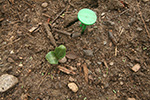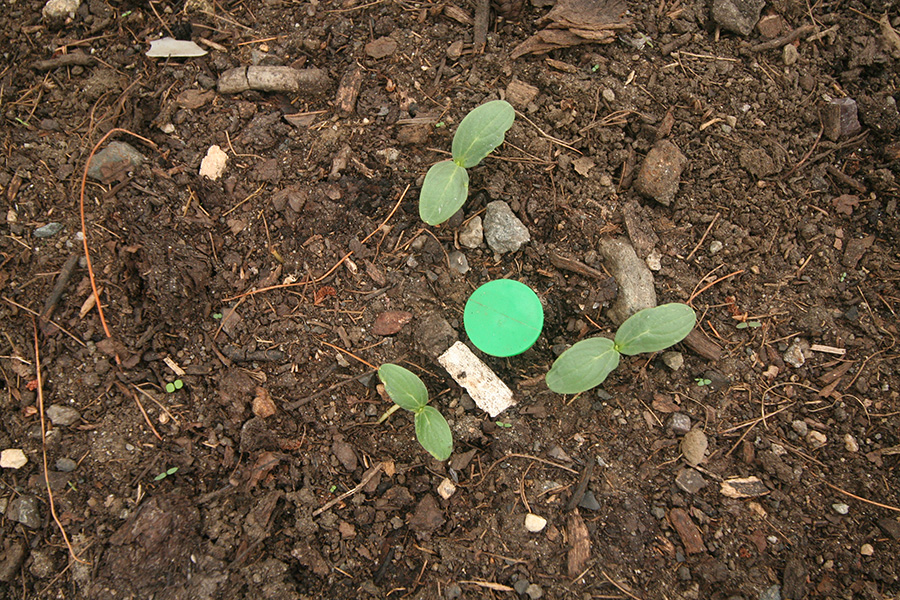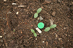 the first thing we noticed was many of the seeds we planted had sprouted. then we saw that there was definitely some animal activity in the middle box. once again the middle green peg had been uprooted, and one of the squash seedlings had been chewed up.