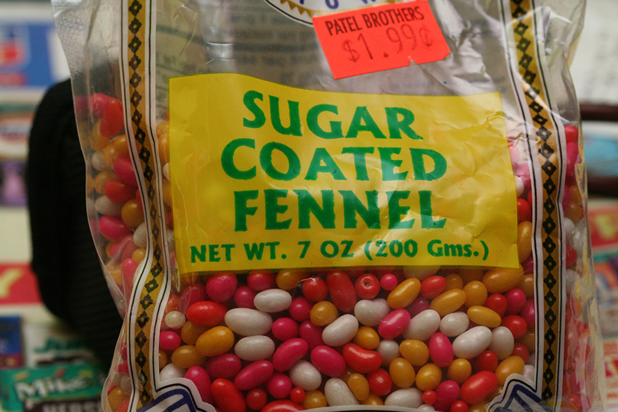 later we did some shopping at patel brothers, the indian market next door. they have a surprisingly good (and cheap) produce section, with some vegetables i'd never seen before. they also carried a lot of bitter melon, which i thought only chinese people were crazy enough to eat it. i got a small packet of sugar-coated fennel seeds and a jar of vindaloo paste.