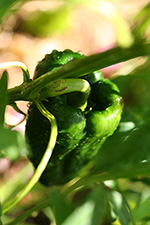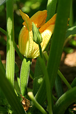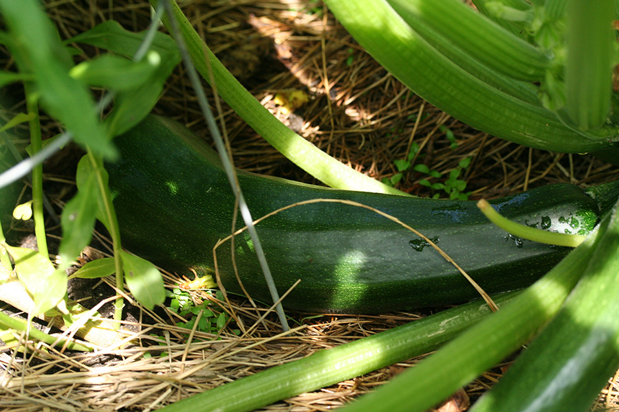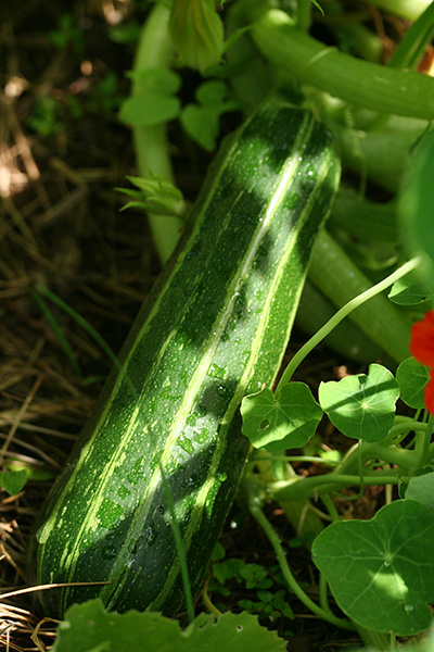i picked one zucchini and one cocozelle. the zucchini was bigger, but bent and pale on one side. the cocozelle is the better looking squash. just 5 days ago these were about the size of pickles, but now look at them! there's already a zucchini-in-waiting about the size of a cigar; i can probably harvest it probably this weekend. even the immature squashes on the base of female zucchini flowers look edible already. unfortunately while explaining the plants i found a squash vine borer egg, so the SVB's are definitely back. playing the odds though, i might get lucky, and maybe they'll visit some neighboring squash plants instead.