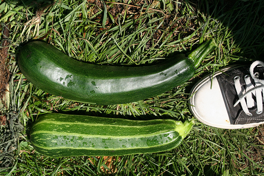 i could've sworn the squashes were at least a few inches smaller yesterday; they're like rapidly expanding clown balloons. left on the vine, i'm sure they could've grown even bigger, but i picked them off since there's plenty more squashes to come.