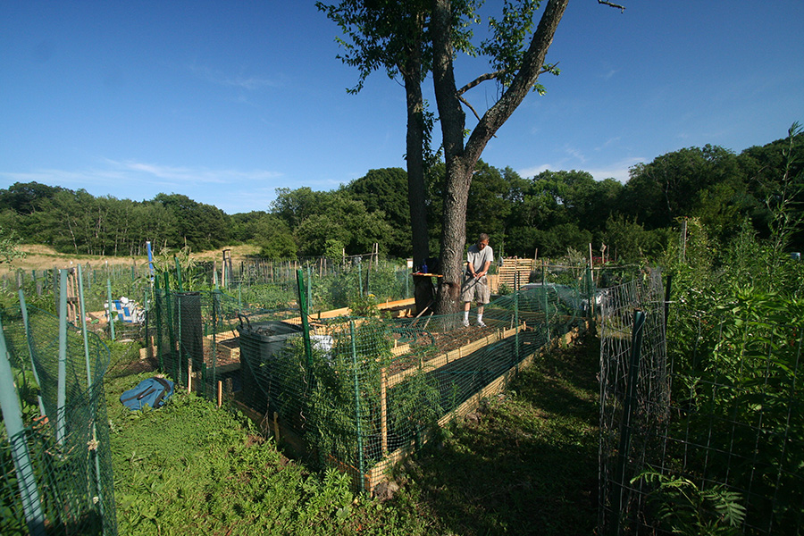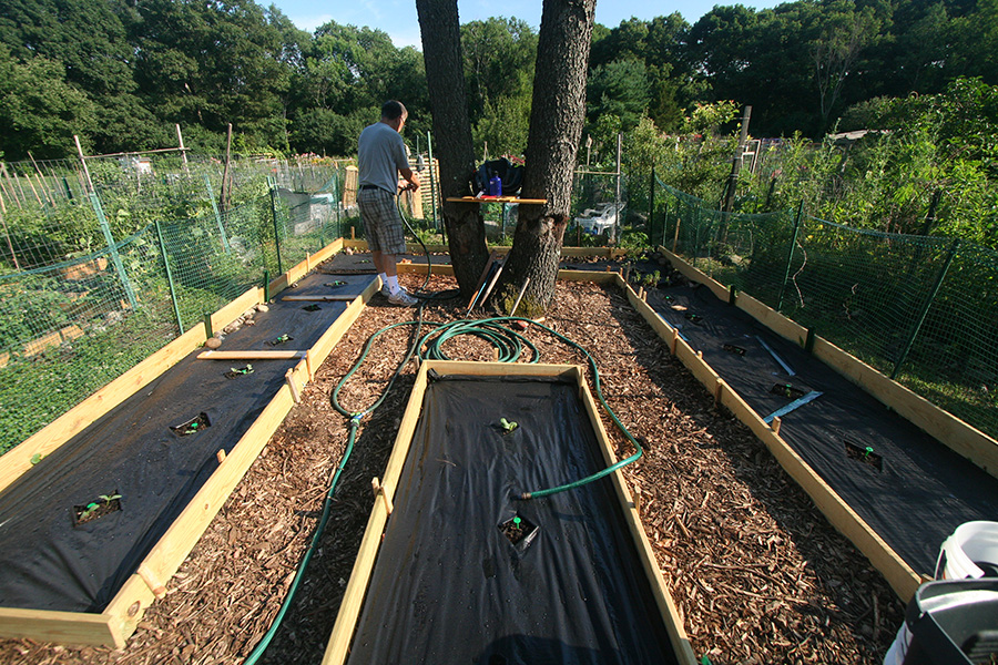 we met the woman who has the plot north of ours. turns out she was just there to water the garden for her daughter. she couldn't find her hose so my father lent her ours. her daughter actually lives in waltham, while she herself lives in cambridge, on chauncy street, not far from where i live. we discovered this when i told her i had a community garden plot in cambridge, and she's seen the sacramento street garden. her daughter (and son-in-law) used to live on the cape and worked on a farm with acres of land. they couldn't stand living in waltham with no backyard, that's why they got this small garden plot. it's actually their first season, which makes sense, since they also have the cheap victory garden issued plastic fencing like us.