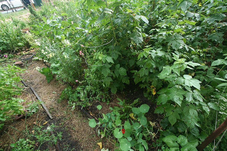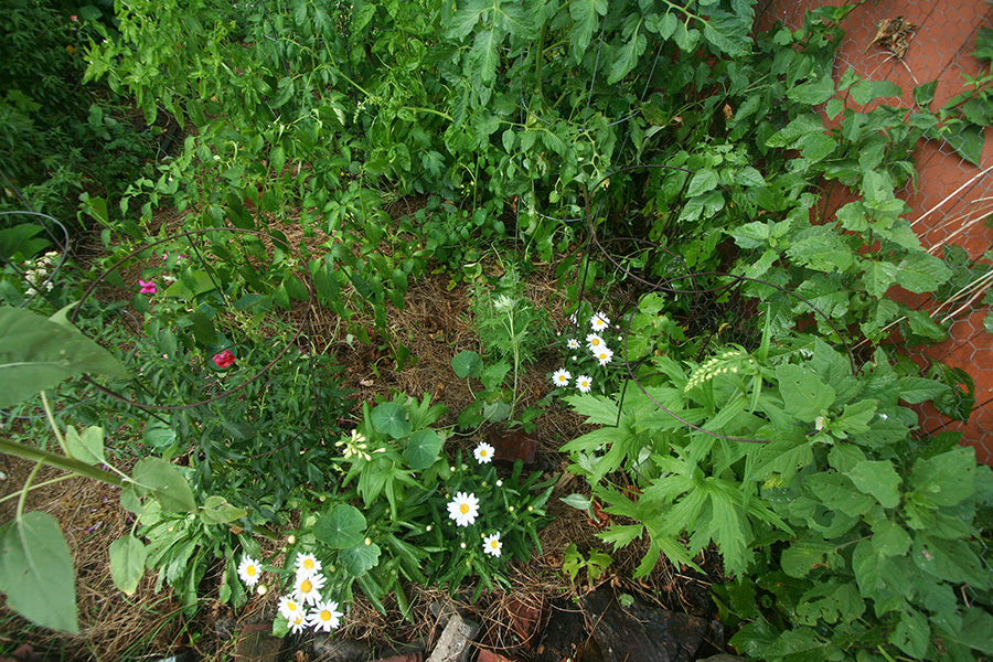 i headed to my own community garden around 4:30. karen, one of the garden coordinator was there, working on the wheelchair-accessible raised bed. laura, the woman who has the plot just south of mine, was there as well, watering her plants. she asked for my help watering her plants for one week in august, and then exchanged e-mails. she asked what i was growing and i gave her a tour, although i still remembered her telling me my plot looked like crap last season (this was when she thought i was a new gardener and was just badmouthing the "previous" gardener).