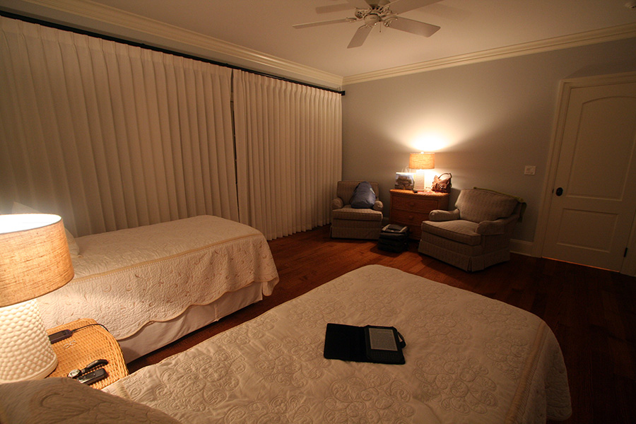 i was feeling a bit tired myself, so after some pizza, i took a shower and prepared for bed around 11:00. i shared the same first floor guest room with megan, reminiscent of the first time we ever met. i warned her about my potential snoring. she said she was prepared, and took out some earplugs.