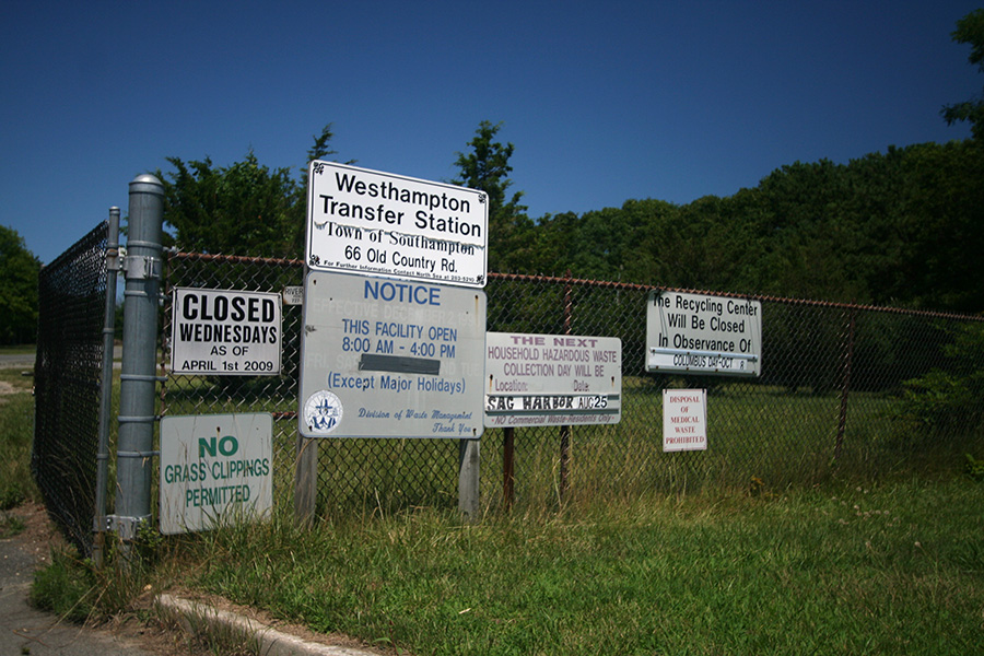 i went with john to throw out the trash from this weekend's festivity. apparently here in the hamptons there's no trash pickup (which is astounding, given how much people pay in property tax); all trash and recyclables have to be taken down to the "transfer station". also, you can't just use any old trash bags: you have to purchase special trash bags (otherwise they won't accept it).