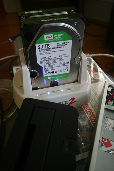 my father's docking station is a dual hard drive station, so i was able to mount both the old drive and the backup drive. unfortunately it only has usb,