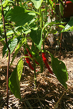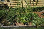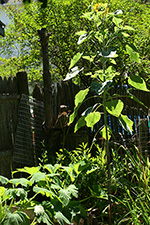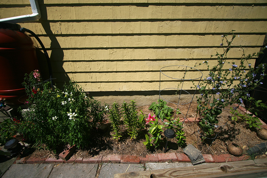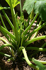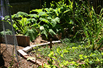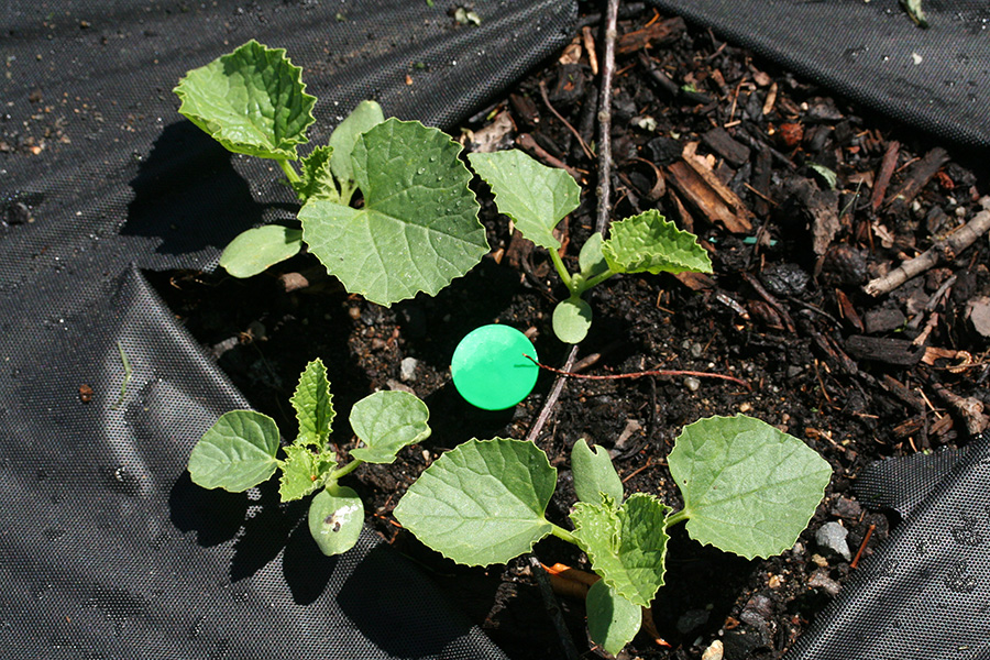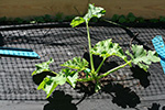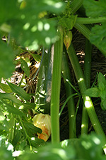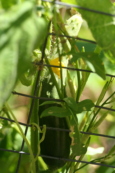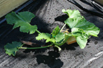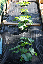 the one zucchini plant is doing the best despite being in the shade more than the other plants. there's also a fairly large cocozelle plant (it's similar to zucchini, but i recognize it from the deeply lobed leaves). cucumbers as a group did the best; none of the seedlings were fed upon, almost all of the seeds germinated, and they grow pretty vigorously (although no match to squashes). the korean melons aren't as big and tall like the cucumbers, but they're holding their own. the melons are situated in the southern edge of the plot, which is the only area that gets sunlight all day with no shade. maybe it's too sunny? but whenever my father or i come to water, we soak deeply, so i've never seen any of the plants display any signs of heat-related wilting.