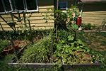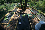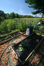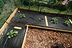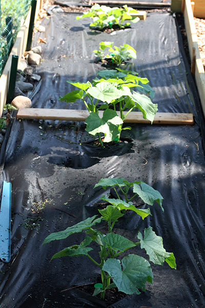 i met the garden coordinator while i was there. "looks great," she said of the garden. "i'm growing some melons, cucumbers, squashes," i told her. "a little late for melons," she said very matter-of-factly; thanks for shooting down my dream! the only reason we're late is because unlike the other gardeners, we got our crap plot a week before the start of summer. given the amount of progress we made in only about a month's time (tilled the soil, put up raised beds, nailed down landscape fabric, germinated seeds), i say we're doing very well.