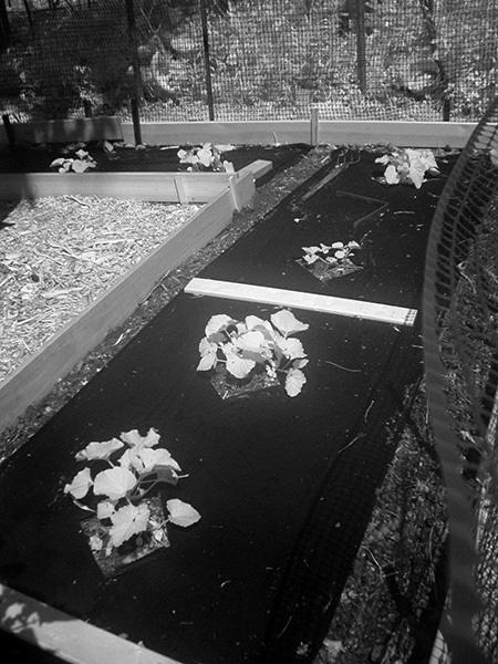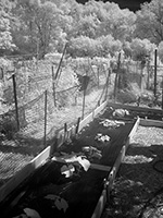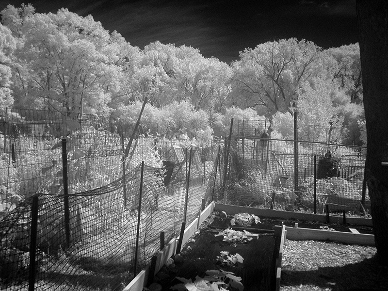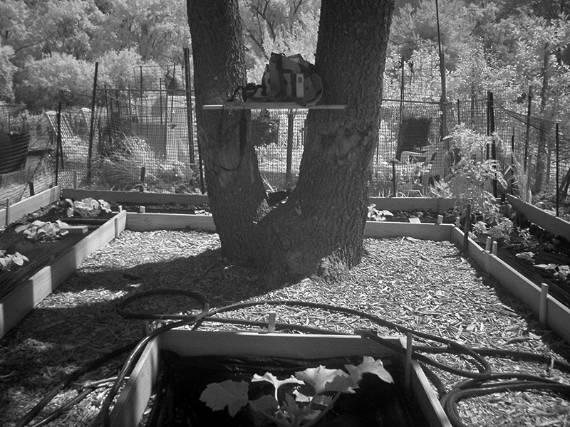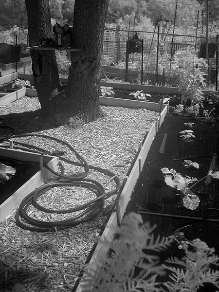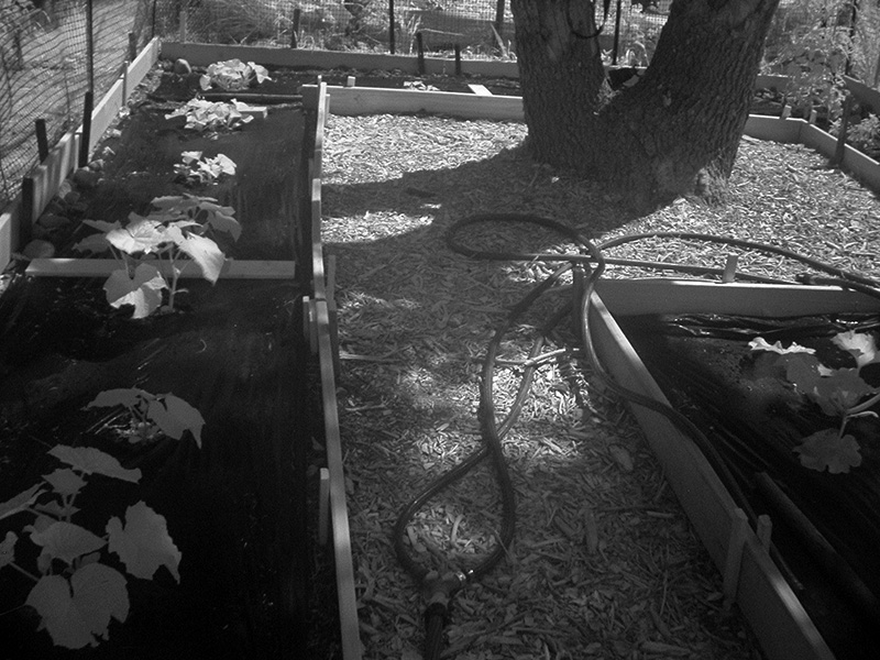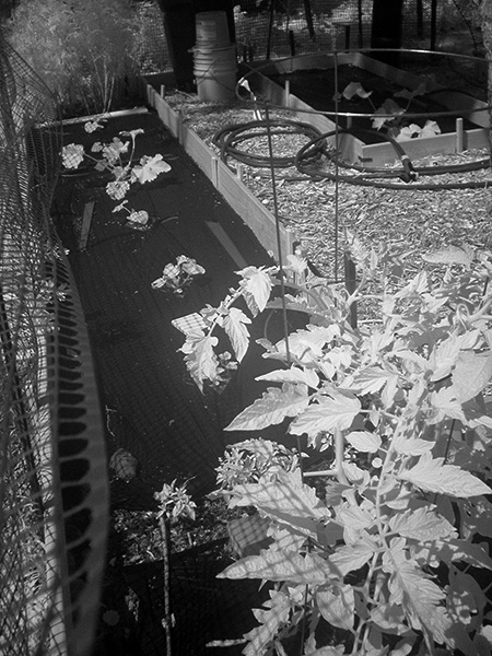 i also took some infrared photos of the garden. the plants really pop out (shown as white) on the black landscape fabric.