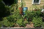 the last time i was here was monday of last week. what a difference 9 days can make! last time they were still seedlings, but now they're individual clumps of leaves. all this hot sunny weather we've been having isn't so good for human comfort but the plants love it. i was there around 2:50, and the shadow of the tree was just moving to the eastern half of the plot. i wasn't the only one affected, as all nearby gardens were similarly eclipsed by the shadow.