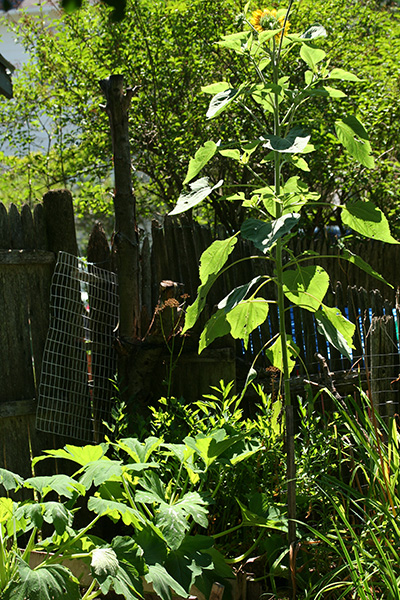 there hasn't been any animal damage since we reinforced the fencing and the seedlings have grown bigger. there was still animal activity however: on the ground was a corn stripped to the core, husks and silks scattered about. there was also a fermented apple; it's almost like some critter was having a picnic in our plot. as long as they don't damage our plants, i don't mind.