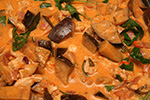 i haven't made thai red curry in a while. i was hoping LJ would get home so i could impress her with one of my best dishes, but she didn't get back until 9:30. even though she already ate, she was still cooking, making some vegetable stew for tomorrow's lunch. anyway, i added too much eggplant, which tasted a bit rubbery. the consistency was also a bit mushy, i really should add some cashew nuts next time for some crunch. however, the curry broth itself was perfection, a complex blend of savory (fish sauce), sweet (brown sugar), spicy (red curry paste, thai hot chili peppers) and tangy (lime juice).