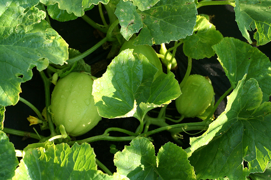 a lot of korean melons (hopefully they'll grow fast enough so we can harvest a few before the bacterial wilt kills all the plants):