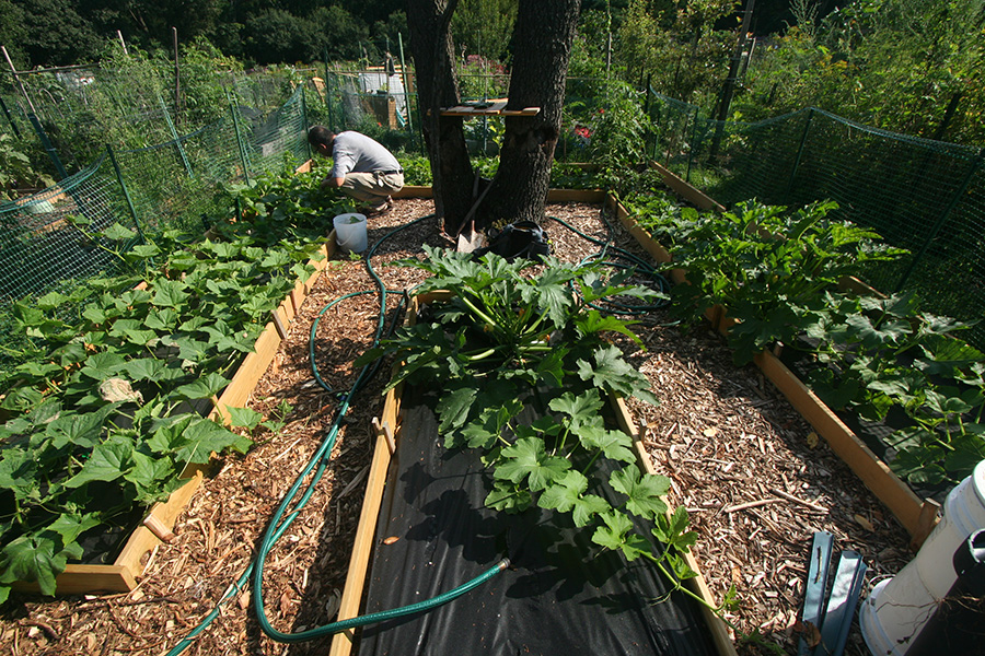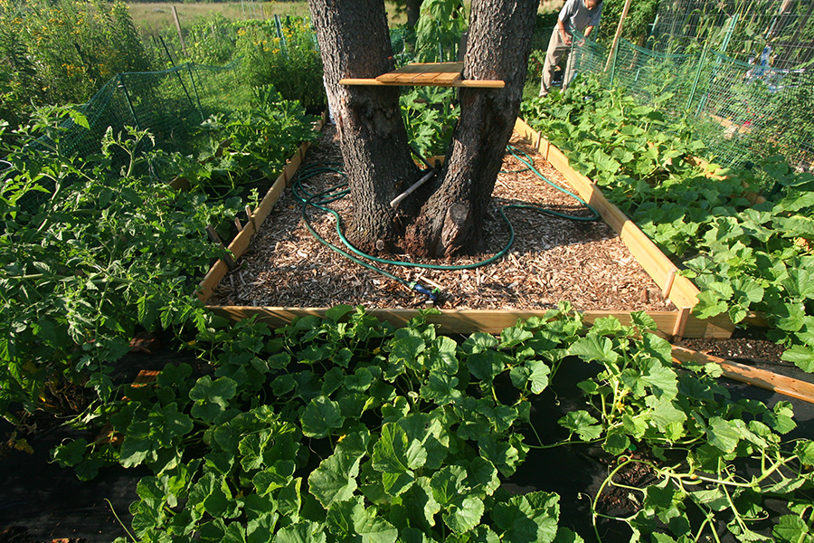 community garden: chatted with marsha, a first year gardener in a temp northwestern plot (existing gardener on sabbatical, that's why she didn't start gardening until the end of june).