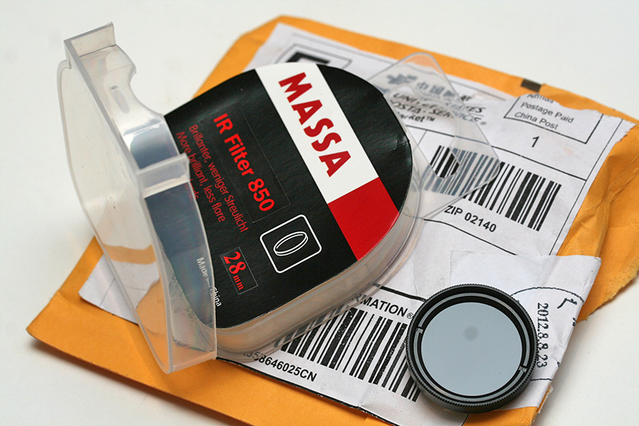 after a shower, i finally had my croissant sandwich for lunch. the mail came early, including a small packet from china. could it be? it was the 28mm 850nm infrared filter i ordered 10 days ago. i was hoping it'd arrive before this weekend so i could use it.