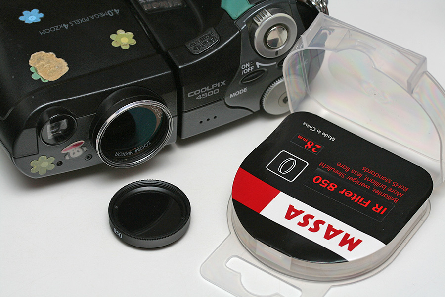 the 28mm filter could fit perfectly on the 28mm thread of my old nikon coolpix 4500. then any additional attachment lens i add would all be able to shoot in infrared. why i never thought of this solution earlier was probably because i didn't think 28mm infrared filter existed (28mm is an unusual size) - until a simple search on ebay proved otherwise.