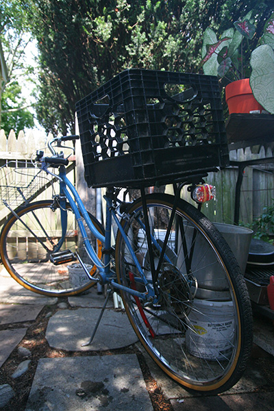 i got a chance to work on my mother's bike: installed a rear light bracket, tightened the rear rack, and added a milk crate basket. not the prettiest accessories, but functional.