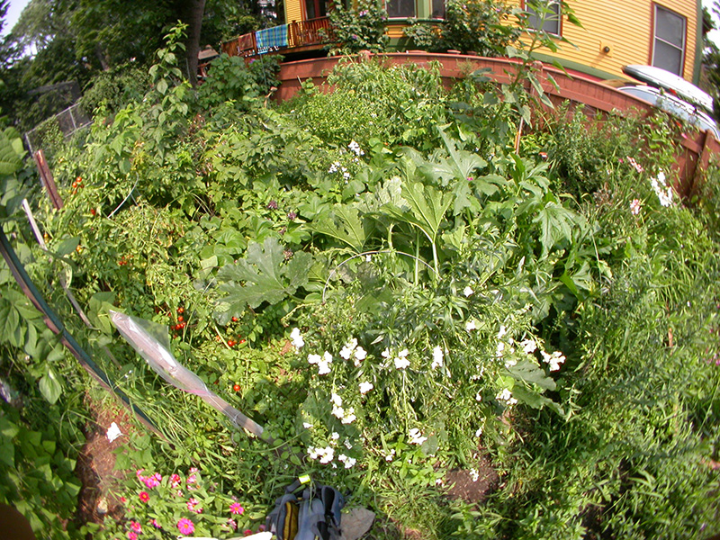 poor christie, who inherited the plot beneath the mulberry tree where nothing seems to grow, basically gave up gardening for a while but now has returned to the green community in the second half of the summer. we chatted briefly, i gave her a large zucchini that was growing in my garden. she was very thankful, said it was her first garden harvest (though not something she grew herself); i was just glad somebody could use one of my squashes, of which i have too may.