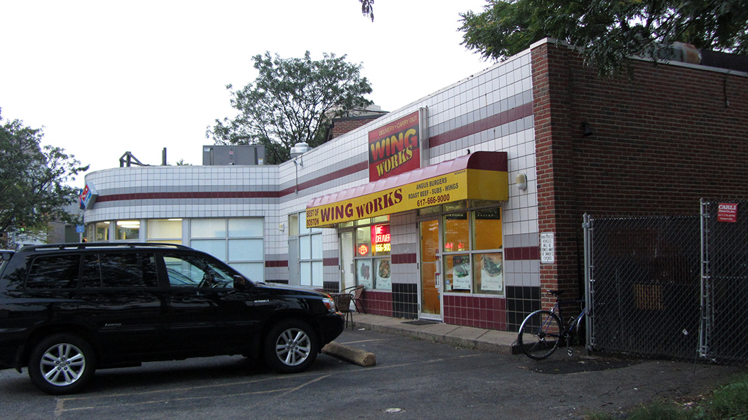 had pau been at home i would've treated him to some wings. since i'd already decided i'd be feasting on them tonight, i phoned in a order anyway, just for myself. i left to go pick it up, where i must've passed 30-40 cyclists going to and from davis square. i knew wing works was under new management, but the new interior renovations were a surprise, now with LCD menu screens.