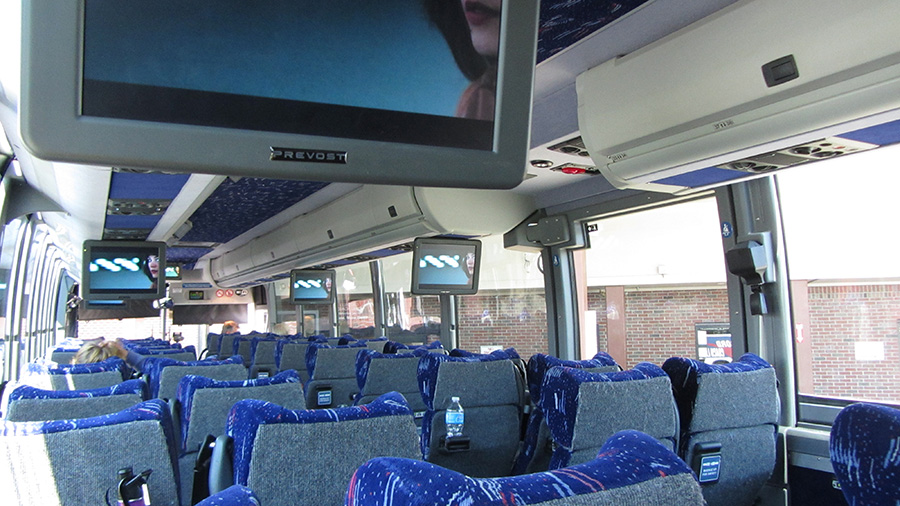 i knew nothing about concord coach but was pleasantly surprised by the amenities on the bus: free wifi, free radio, free movies (audio from one of the radio channels, just like on a plane), pillow wings on the seats, cup holder, folding tray, power outlets, seat belts, large panoramic windows, clean onboard bathroom (relatively spacious, given the size limitation on a bus), and free complimentary bottled water and snacks at the station. i don't know where their routes extend to, but if i ever need travel north without a car, i'd seriously consider going with concord coach again.