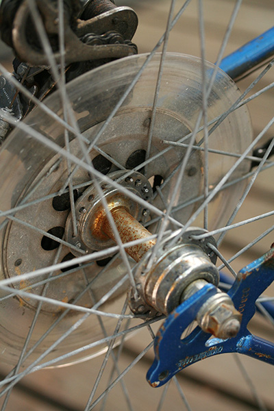 i'm still recovering from my acadia trip. it was only yesterday that i was up in maine, but it already feels like days ago. i need more sleep and plan on going to bed soon. if i close my eyes for even a few minutes i'm afraid i'll nod off for real. today i spent some time examining the ross gran tour II pau left behind. most of the work is confined to the rear wheel, which needs some broken spokes replaced and a new tire.