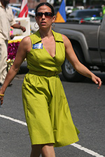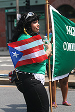i arrived a little after 12:30, with the parade scheduled to begin at 1:00. but these caribbean parades have a tendency to start late, so i wasn't too worried i'd miss the action. i went to the corner of MLK boulevard and warren street, my usual spot. this is where all the politicians normally gather. there was a big group supporting elizabeth warren (although the woman herself was a no show), handing out free campaign stickers and t-shirts. there were also a few neighborhood politicians whom i didn't recognize, but i did see sonia chang-diaz, who is a common political figure at these parade events (here she is at the pride march back in june).