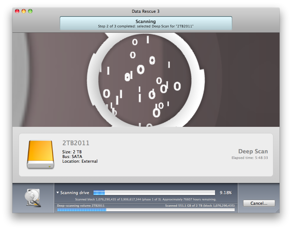 back in cambridge, i checked on the status of my deep scan. even though it managed to scan over 500GB of data (more than what i had saved on the drive), it was still telling me it was only 9% done with scanning. i stopped the scanning, to be resumed at another time.