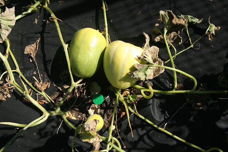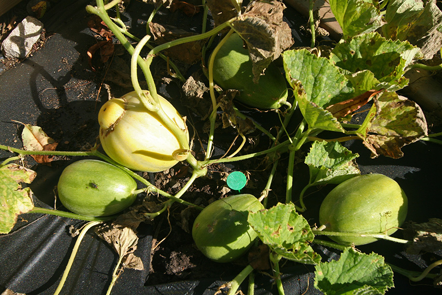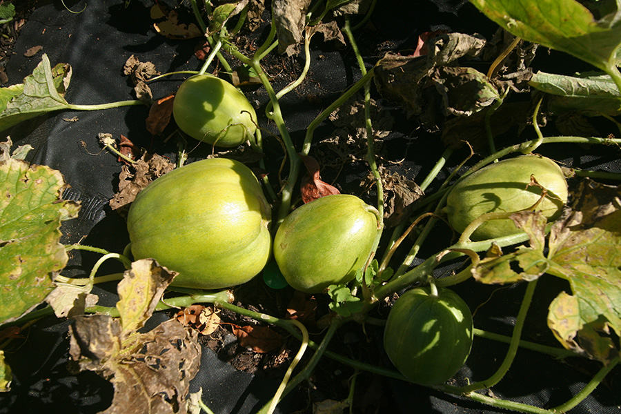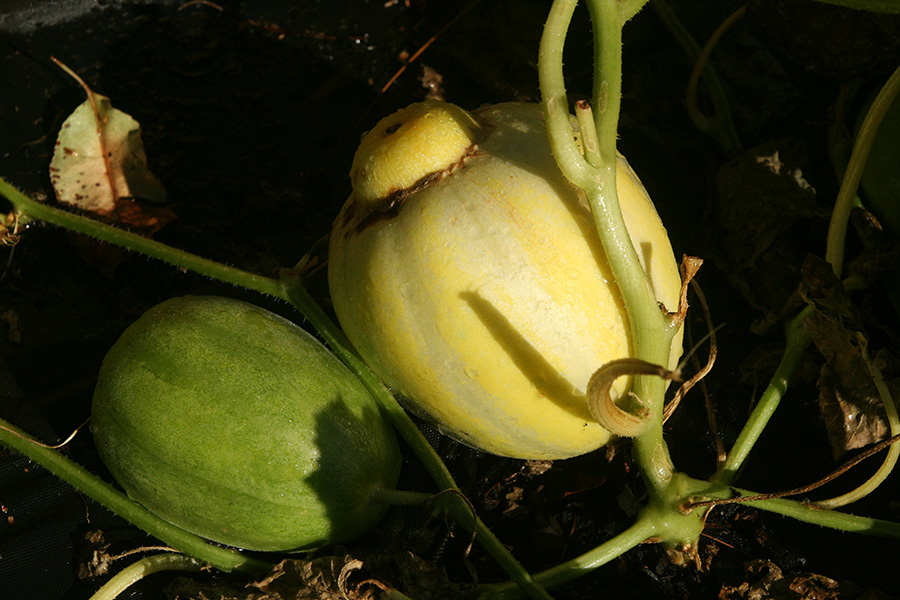 our most important crop were the korean melons. maybe in another week they will completely succumb to wilt, with melons in various stages of development. i think we may have a few good ones, we won't be able to tell until we harvest them.