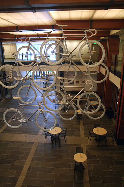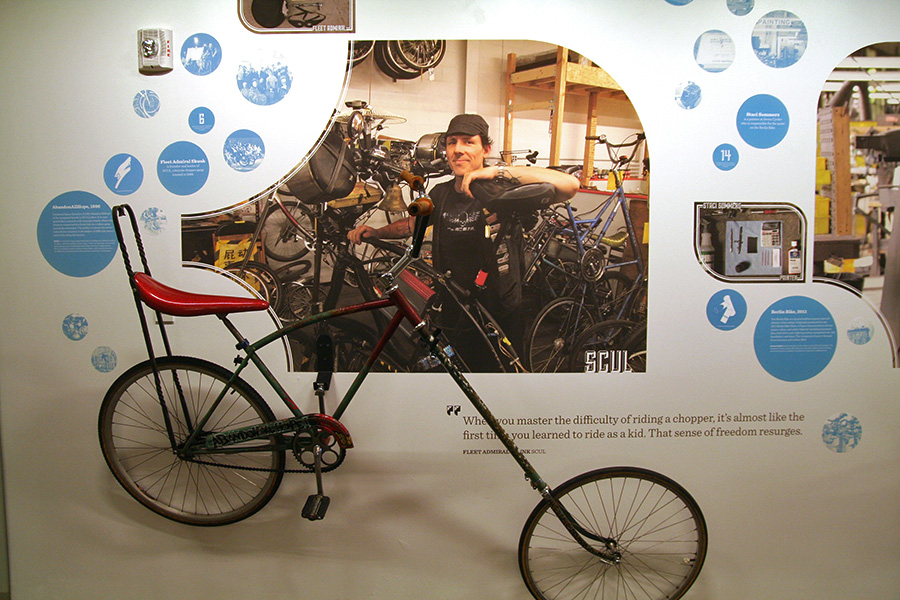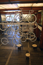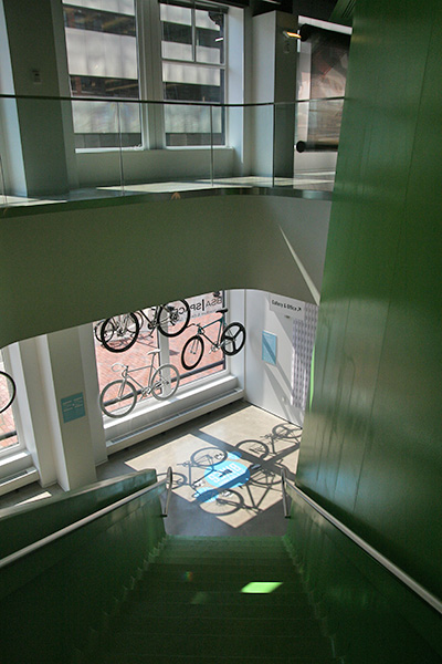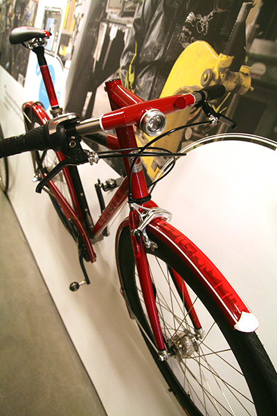the exhibit was mildly interesting, but the gallery space felt like the hallways between conference rooms, that the bikes themselves were simply office decorations. one of the most interesting ones i saw was a seven cycle called the "berlin bike", featuring in-frame front/rear lights and a belt drive. a bike like this you'd never see parked on the street; not sure how much it'd cost, but it just screams expensive.
