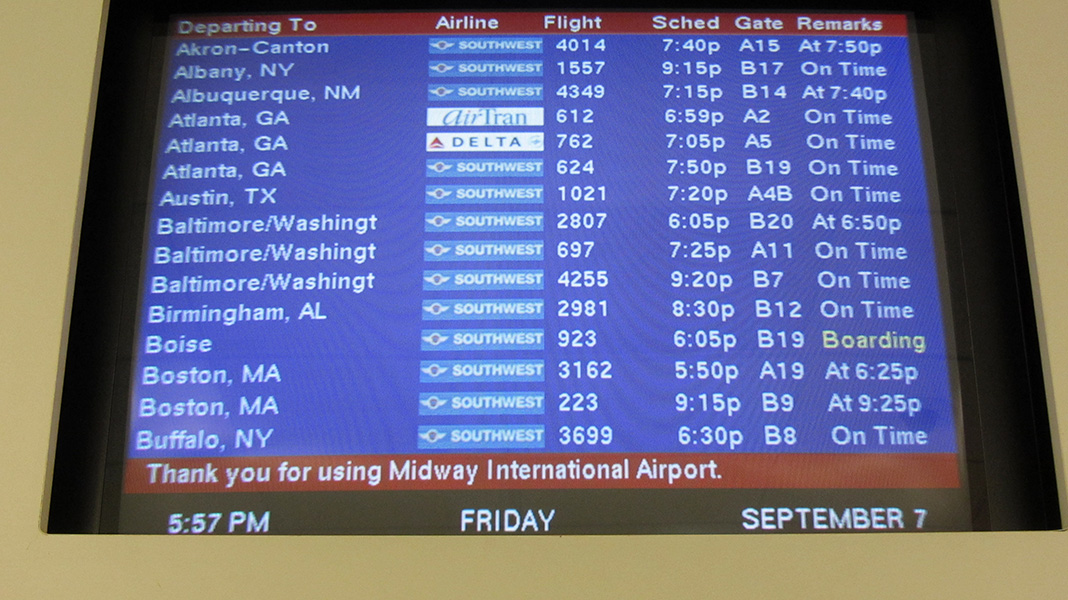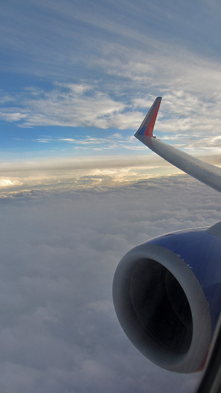 2nd time around through airport security and i was already a pro. i had my shoes and belt off, my pockets emptied, my laptop in its own separate bin. unfortunately i decided to wait in the longer line, so it took a little while, had nothing to do with my own preparedness. i still had 40 minutes before my flight, until they made the announcement there would be a 30 minute later (6:20), for reasons unknown. undeservedly frustrated, i decided to wander the airport. i made it to the other end of the concourse before i heard the announcement for final boarding for my flight. i quickly raced back to my gate (A15). my southwest line number was A30, but they were already boarding the B group. when i showed the flight attendant my boarding pass, he playfully chastised me, "A! where have you been! we're boarding B's now!"