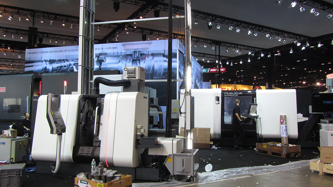 at exactly noontime the place cleared out - the union workers disappearing for their lunch break. mick and i had a late lunch downstairs at the convention hotel cafe around 2:00. by that point i knew i wasn't going anywhere.1 my flight leaving chicago was 5:50, so i should be going to the airport no later than 4:00. that's the problem with business trips: as much as i'd like to think it's kind of like a paid sightseeing outing, i'm really here to work, so the job comes first. so after lunch i tried to make the best of my situation: if i couldn't see chicago, at least i could see some of the convention exhibits. chicago i can always revisit, but when will i ever get a chance to come to another IMTS?