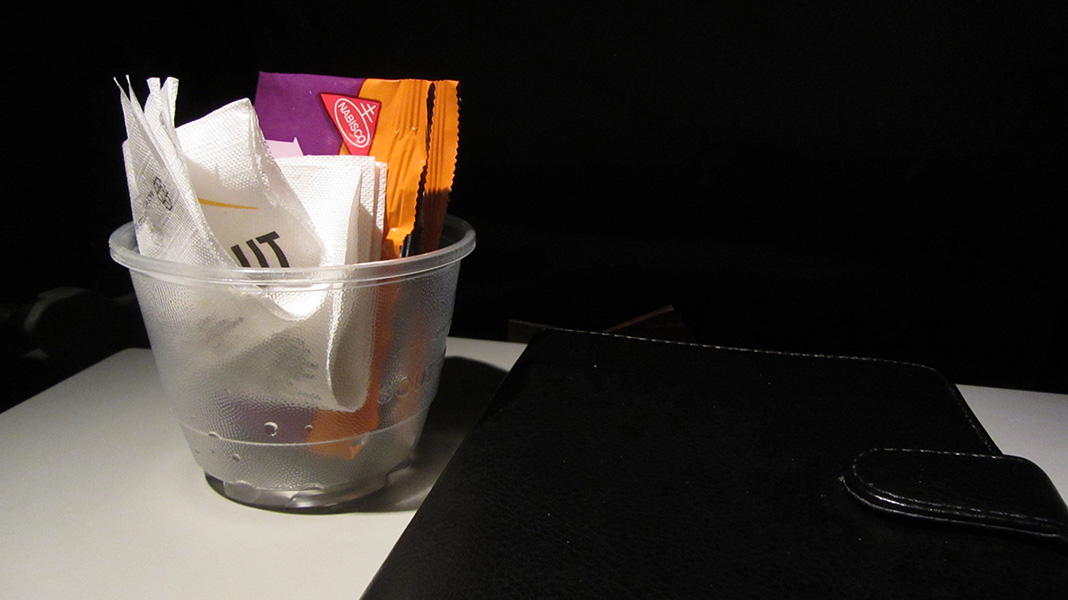 i figured all the good seats were taken because i arrived onboard so late, but to my surprise, there was an empty window seat in the 2nd row. i couldn't believe my luck and quickly grabbed it. in the aisle seat was a silver-haired woman who seemed very distinguished and was busy working on a crossword puzzle. i took out my kindle and continued reading 1491. our flight attendant (the same guy who boarded me) was a flamboyantly funny and sassy gay man. not sure if he does the same act, but his safety lecture was riotously funny. "people, you are allowed to smile. it's friday!"