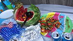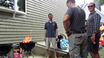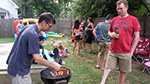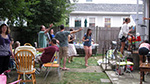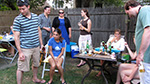 sometime after 6:00 it began to rain. the sky threatened to rain on many occasions throughout the day, and occasionally i felt a drop or two, but this was the first instance of a serious drizzle, although andrew's neighbor saul - who studied meteorology back in college - said this was just a sporadic shower and would clear away soon, with the bulk of the rainstorm not arriving until 9:00. still, it gave everyone the excuse to quickly clean up and take the party back inside.