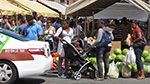 i made it to haymarket via bicycle in about 20 minutes, a pretty fast time. i wanted to get some blueberries for myself (for my granola yogurt breakfast meals) and some fruit for andrew's barbecue that was starting at 2:00. i hoping to score some cherries but their season is long over. watermelon is the typical summer barbecue fruit of choice, but andrew told me they already got one. i ended up getting 2 boxes of strawberries.