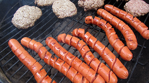 when it came time for grilling, i spiral-cut a package of beef hot dogs just to see what they were like. they were definitely more crispy, but still tasted like hot dogs. andrew also had hand-rolled burger patties, but they were plain burgers, none of the extra spices he used to put in. the star of the barbecue show were several packages of dom's original sirloin tips. i had a small piece which was blown onto the floor when a strong gust of wind took my plastic plate, but i picked it up and ate it anyway, that's how delicious and precious they are.