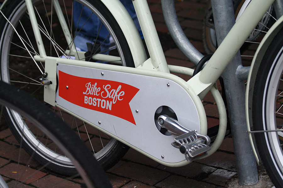 after the tail end of the parade passed by us, i said good bye to WCH and went to go retrieve my bike. i planned on following the parade into kendall square via main street, but i didn't anticipate how many other people would be doing the same thing, so there was a sea of people that i had to bike through. i ended up having to push my bike from the sidewalk. once i got in front of the human wave, the road was relatively clear again and i could continue biking forward.