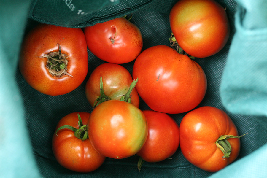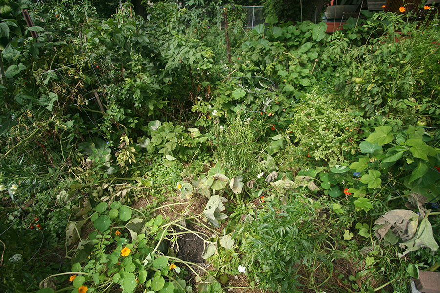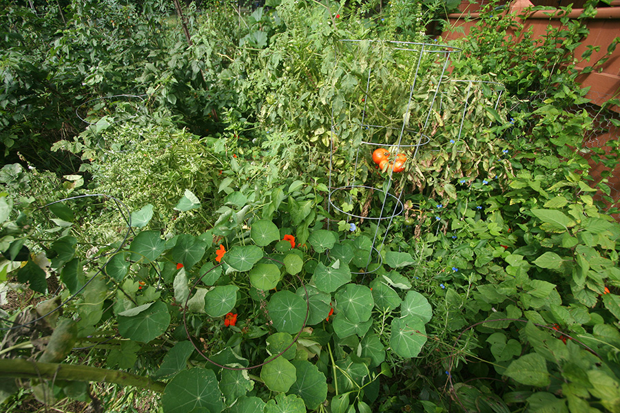 next i paid a visit to the community garden. my last visit was about a week ago, when i showed drew my plot. there was at least one red tomato but i didn't pick it because i didn't have time.