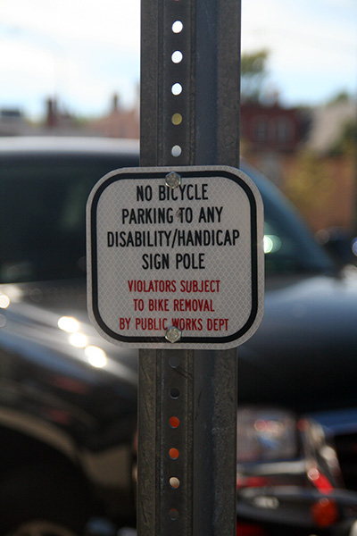 didn't seem to recognize me and hassled me about the size of the box, pulling out his tape measure to figure out the volume. this was unusual because i've sent bigger boxes in the past. this was actually one of the smallest shipments in terms of quantity but a big box because there were a lot of shoes. i felt bad for the people behind me in line; i tried not to look at them out of guilt even though it wasn't my fault. when i went outside i realized my bike was parked on a no-bike-parking signpost.