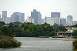 from the bridge i had a nice view of boston across the mystic river. it gave me a chance to play around with my telephoto lens. i've been thinking about getting a canon-refurbished 60D camera upgrade, along with a refurbished 18-200mm EF-S lens. i would've preferred a range up to 300mm, but canon doesn't have one like that and the closest third party lens (tamron 18-270mm) has some sharpness issues. there's a 20mm gap in my lenses collection: from 17-50mm to 70-300mm. it's a pain for parades because i can only shoot normal range or telephoto, and each time i switch i have to change lens.