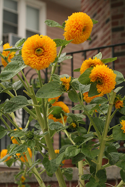 also at the intersection of harvard and main street i saw some unusual flowers. large orange heads on tall stems (4-5ft), at first i thought they were sunflowers but they're like nothing i've ever seen before. further research when i got home makes me think they might be giant teddy bear sunflowers. i might grow them in my own garden next year as an alternative to my usual sunflowers.