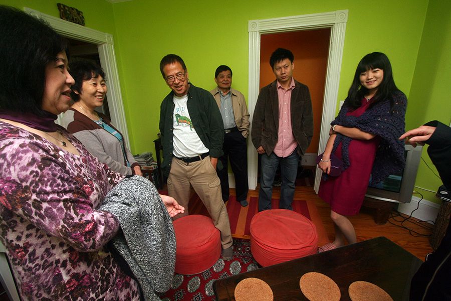 after dinner i biked home with the full moon in the sky. i did some quick cleaning before shortly afterwards everyone came over to check out my place. binbin's soon-to-be in-laws wanted to see what a typical cambridge home looked like. there wasn't enough seats in my living room for everyone to sit so they all stood around but left soon afterwards.