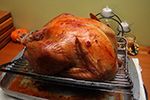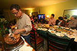 i sat at one end of the table while my parents sat at the other. although it may seem like separate heads of the table, it's actually the worst place to sit because we're farthest away from the food. i actually ate standing up for the first 15 minutes because i couldn't reach anything. i only sat down when my father finally carved the turkey. speaking of which, we could only get our hands on a 16 lbs. bird; i was hoping for something bigger but since it isn't officially thanksgiving yet, it's hard to find a turkey any bigger.