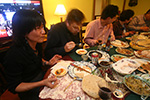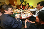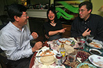 i took about 250 photos, mostly with the flash. since it was in a familiar environment, i wasn't shy about taking as many photos as i could, moving around the dining table, trying to get the best viewing angle. due to the length of the dining space, my normal flash shooting setting of manual f/8 1/125 seconds (ISO400) only exposed the foreground, leaving the background in the dark. i had to resort to shooting in aperture priority mode at f/4-4.5 (ISO400), but that resulted in a slow shutter speed of 1/8 seconds and lower. the risk was blurry heads for anyone who was moving.