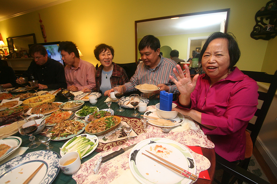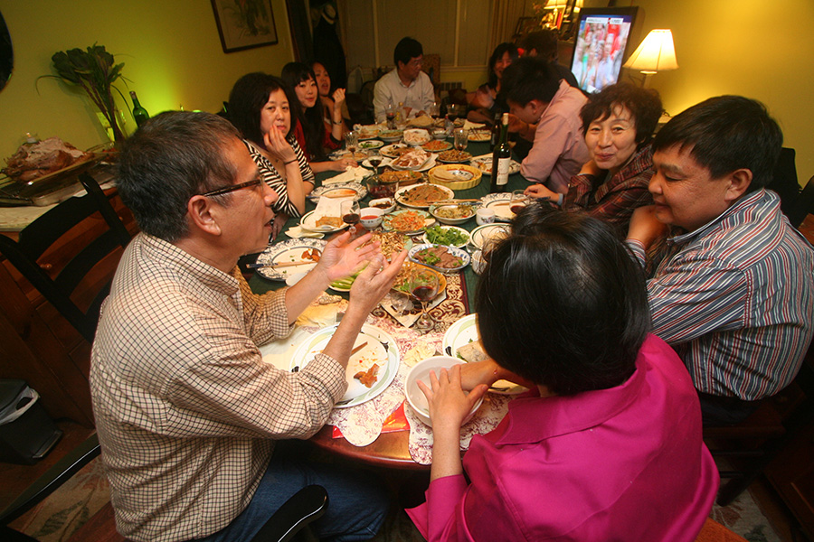 my parents were holding this october thanksgiving under the pretense that it was to celebrate their wedding anniversary. because of this, bin bin's family brought a gift (a coffee maker) and my mother received some red envelopes stuffed with money. my mother told everyone how she and my father met, a story that surprisingly i've never heard before. i always thought she was a school teacher and that they met through my father's aunt who was also a school teacher. i also didn't realize that my mother got married when she was only 19-years-old (funny i never did the math).