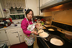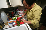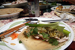 bin bin's mother wanted to help my mother with the fried spring rolls. she seemed to know her way around the kitchen so my mother let her take over while she herself went to entertain the other guests. when bin bin's mother handed my mother a plated of freshly fried spring rolls, i heard my mother scream and then dropped the plate onto the floor, shards of ceramic mixed with shattered spring rolls. my mother was laughing so i was kind of confused as to what was happening. i thought maybe the plate slipped out of her hands, but she was saying something about, "i burned my hand! it's so hot!" and then running to the sink. she ended up suffering some 2nd degree burn on a few fingers, which blistered up almost immediately. that pretty much fulfilled the drama quota for the day. everyone was giving her different advice, from rubbing some salt on the wound to putting on some cream; i told her just to rinse her fingers under the faucet. afterwards she ate with her hand in a bowl of ice water.