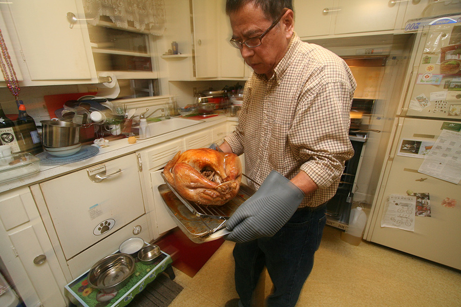 my parents came home around 1:30. while my father cooked in the kitchen, my mother and i did some last minute cleaning. when my sister finally came home around 2:00, it freed up my mother to help with the cooking. there was a bit of tension in the air over my sister's lack of cleaning urgency (with the guests due to arrive in a matter of hours) but i tried to keep the peace.