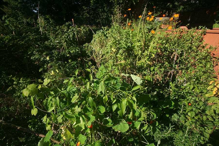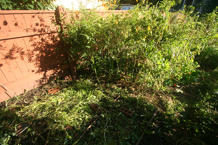 back at home, i paid a visit to the community garden. last week i'd been warned by the garden "use it or lose it" committee that my plot was beginning to get out of hand and needed some maintenance. i found the criticism a bit unnecessary since by next week we might experience our first frost and everything will be dead in the community garden anyway, thereby making the issue sort of moot. i pulled up some dead plants (tomatoes, thai basil, wild parsley) and uprooted my patch of asiatic dayflowers (which back in early spring was actually my garlic field). i brought a bag in case there was anything to harvest but other than a few raspberries, there wasn't much left.