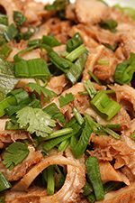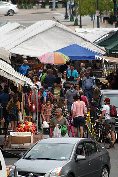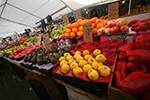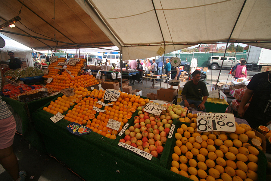 a pound of korean long green hot peppers ($1), 3 boxes of blueberries ($2), a pound of ginger ($1), 3 bunches of scallions ($1), 2 bunches of cilantro ($1). there was also a vendor who was selling quince (3 for $1); they're only good for making jams because they're too tart to be eaten raw.